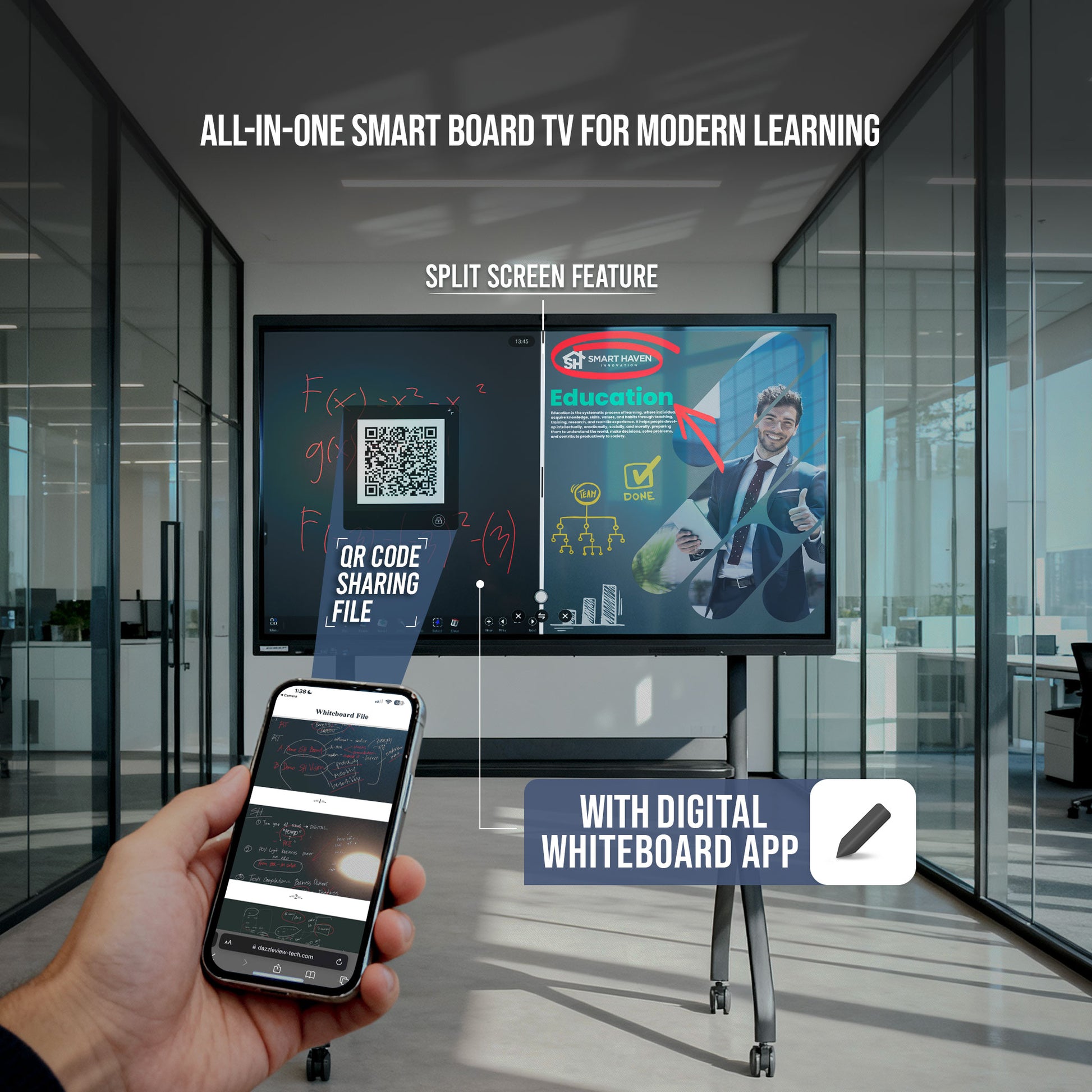 SH Vision Board 4k 65” - Interactive 4K Smart Board Redefine collaboration, teaching, and presentations. The SH Vision Board 65” is your all-in-one solution for seamless meetings, smart learning, and dynamic team collaboration. Designed for businesses and institutions looking to close deals faster, engage audiences better, and present ideas effortlessly.