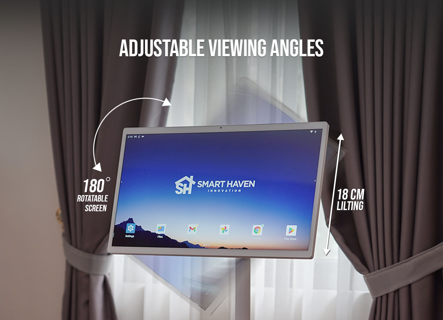 Adjust your viewing angles effortlessly with Smart Haven's innovative smart TVs. Tailor your setup for optimal comfort whether you're working, streaming, or browsing.
